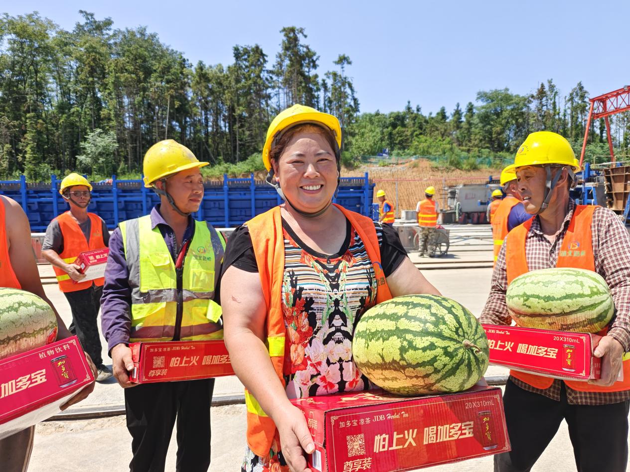 汪繼明深入赤壁東項目2號梁場,實地察看項目施工進展、安全質量管控等情況,隨后在項目現場進行慰問,將防暑降溫物品送到一線員工手中,將集團的關心關愛送到職工群眾心坎上,為酷暑“降”溫,讓愛心“升”溫。同時他貼心叮囑大家要勞逸結合,注意防暑降溫,確保安全生產。湖北交投鄂南公司黨委書記、董事長倪四清,黨委委員、副總經理湯立志等參與慰問活動。