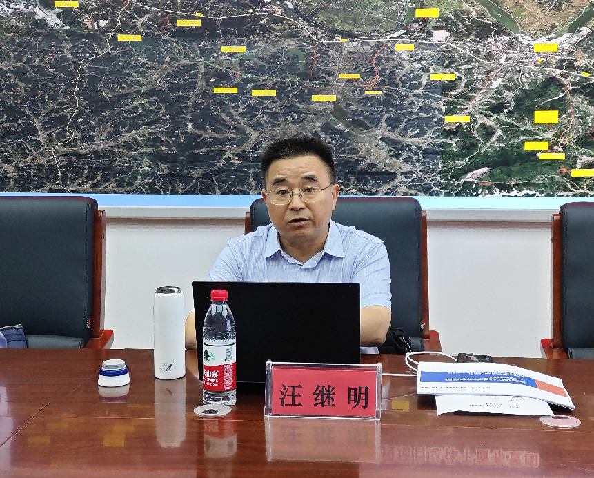 在項目部會議室觀看項目全線航拍視頻后,汪繼明聽取了赤壁東項目負責人王明關于項目安全生產、施工進度、審計整改、黨建工作等方面的情況匯報,并同與會人員進行深入交流,剖析當前項目在建設推進過程中存在的問題,并就下一步項目建設工作提出指導意見。
