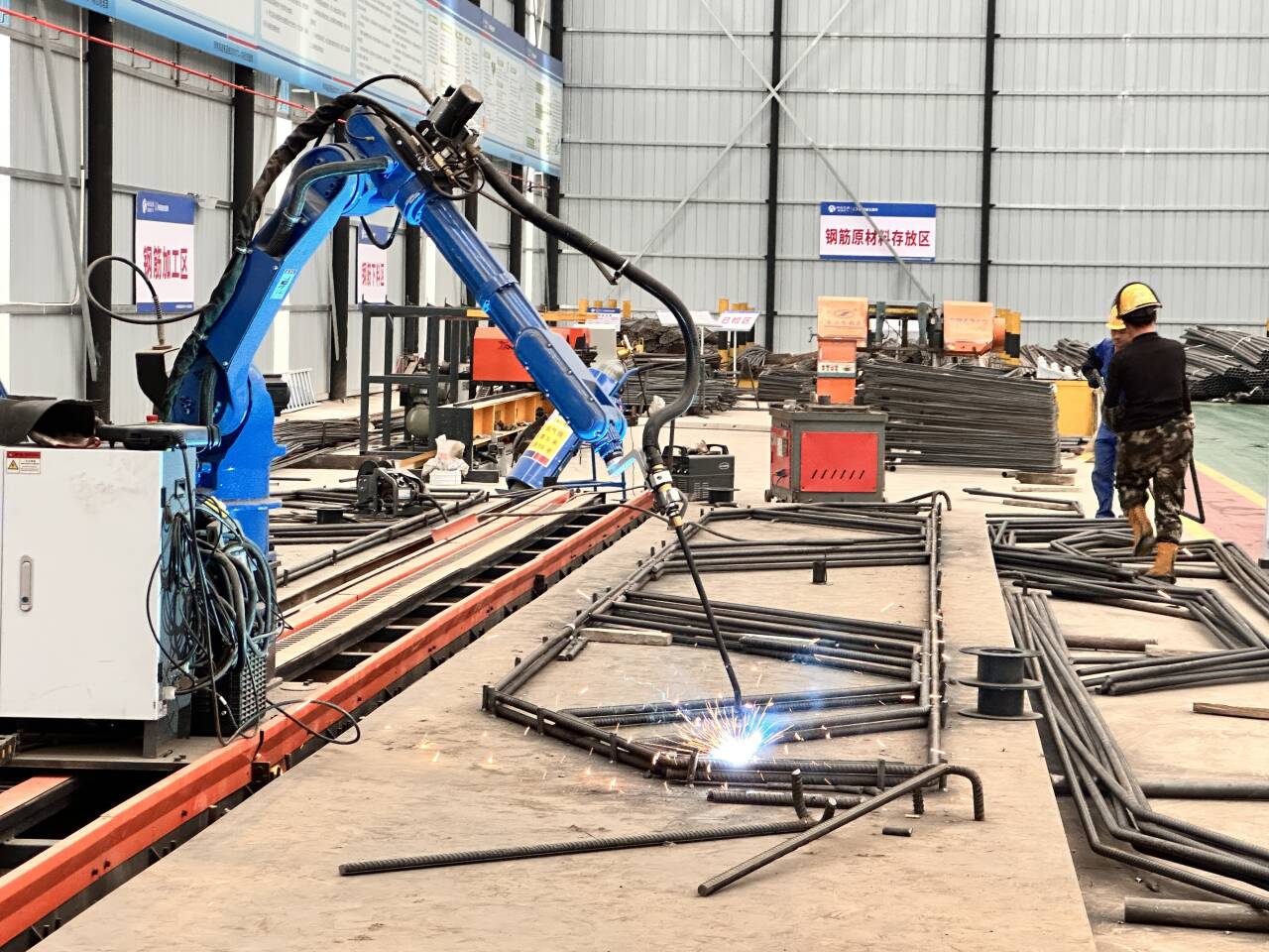 項目大力推行“智能制造”,鋼筋加工由自動彎箍機、滾焊機、焊接機器人等智能工裝精準完成,同時著力打造智慧拌合站與數智梁場。混凝土拌和在全流程監控下實現質量閉環,每一片預制梁從澆筑到養護的生產數據流均被物聯網自動采集綁定,為每個構件賦予唯一的“數字基因”,使質量追溯貫穿全生命周期,實現從“工廠制造”向“數字智造”的深度轉型。